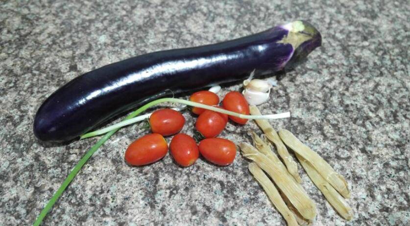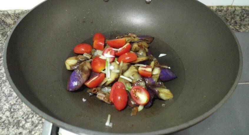主料:沙虫10克、茄子1根、圣女果50克、油3克、葱1克、蚝油5克、蒜1克、酱油2克。