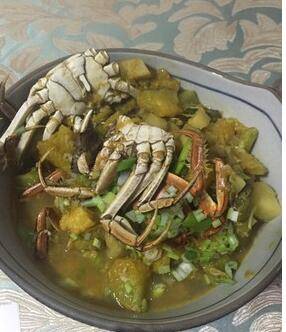 最佳答案准备食材:牛腿瓜500克、河蟹3只、盐5克、油10克、生抽少许、糖、虾皮、大葱少许。河蟹洗净,切开待用。牛腿瓜洗净切块。热锅放油,少许大葱炝锅,待油温上升放入牛腿瓜翻炒。炒至颜色微微变黄,油亮,放水莫过瓜,放点少许生抽和盐。放入河蟹,把火调小慢炖,这时也可放点虾皮提鲜,等河蟹煮熟即可...