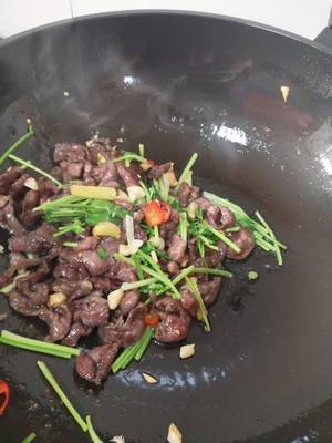 5、加热腌制好的牛腱肉,大火快速爆炒。