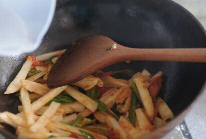 藕条倒进去一起翻炒两分钟。