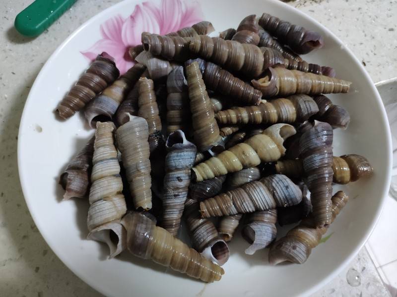 1、新鲜的锥螺,用清水刷洗干净。