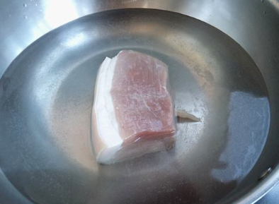 锅加冷水,猪肉入锅;