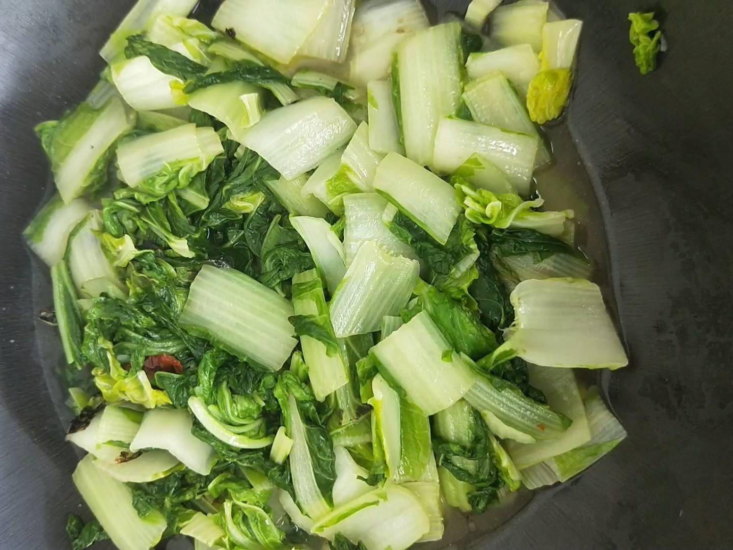 3、加入切好的杭白菜。