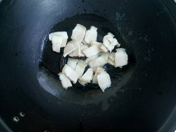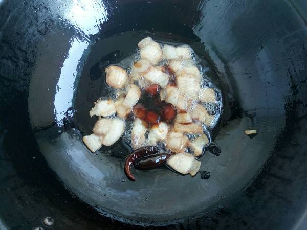 4、起锅,加入油和八角及辣椒小火煸炒出香味。