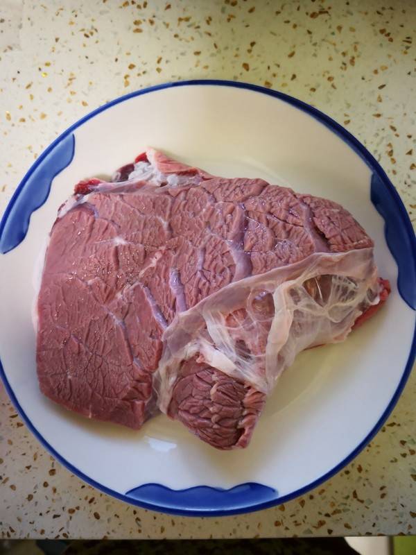 1、准备材料:牛肉300克、香腌料适量、鸡蛋2个、面粉适量、面包糠适量、豆油适量。