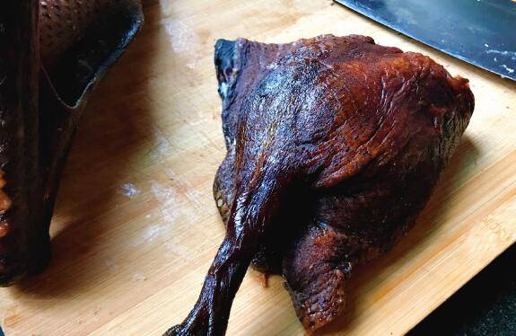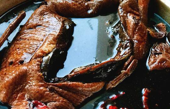 用料:鹅1只、湖羊酱油2400g、干辣椒3个、花椒1勺、生姜4片、冰糖50g、白糖60g、桂皮1块、八角3个、丁香1小勺、香叶3片、白酒150ml。