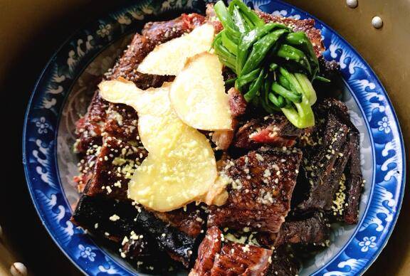 6、酱晒好的大鹅,葱和姜准备好。