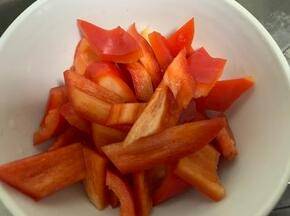 菜椒切小块备用。