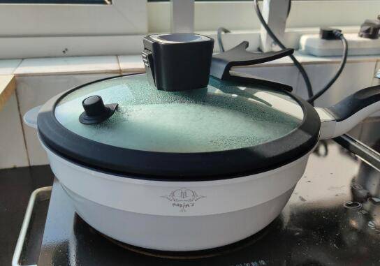 8、盖上锅盖,焖压2分钟左右。