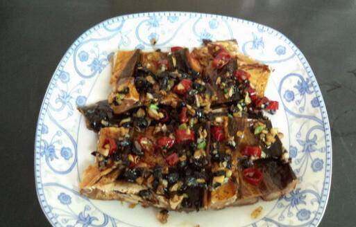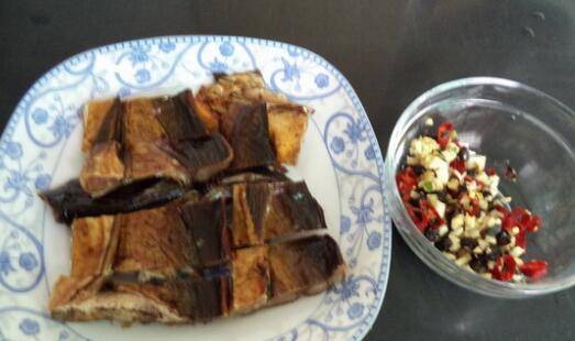 一、蒸鱼干。准备食材:鱼干半条、姜1小块、蒜2瓣、干辣椒2个、豆豉20克、白糖1/2茶匙、酱油1小勺、盐1茶匙、葱花少许。