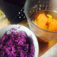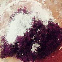 2、紫薯切块煮熟,打成泥。