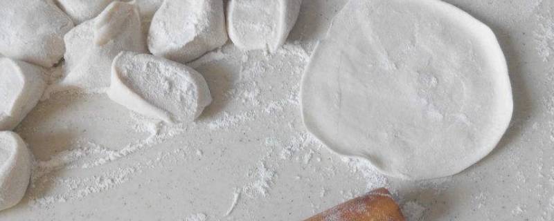 2、然后将饺子皮抖开,让干面粉分散均匀。