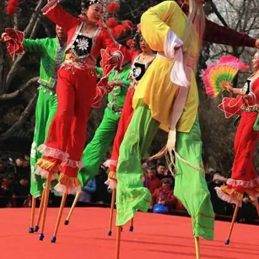 4、踩高跷:是汉族传统民俗活动之一。踩高跷俗称缚柴脚,亦称“高跷”、“踏高跷”、“扎高脚”、“走高腿”,是我国北方民间盛行的一种群众性技艺表演,多在一些民间节日里由舞蹈者脚上绑着逗,武跷则强调个人技巧与绝招,各地高跷,都已形成鲜明的地域风格与民族色彩。