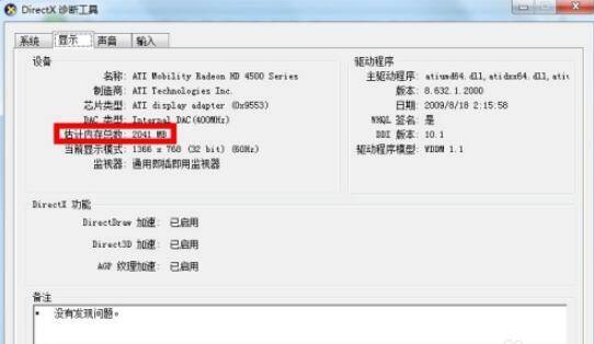 在显示页面,可以清楚看到显存大小,同时更多的显卡信息也有,包括显卡加速等。