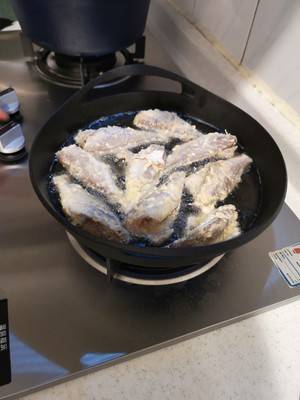 4、热锅冷油,转小火,油8成热下鱼。
