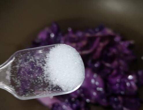 2、紫甘蓝一片片剥开洗净,用手撕成小块。