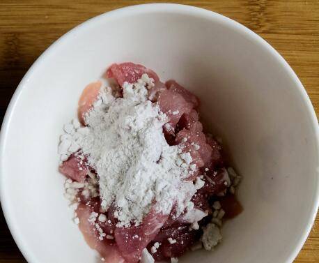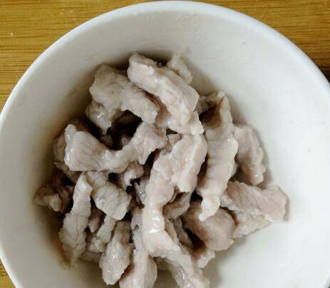 将瘦肉洗净切成肉丝,放碗中加少量淀粉,料酒抓拌均匀,静置几分钟。
