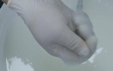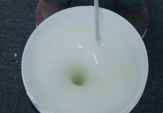 用手检验胶液厚度,当胶体和清水均匀融合之后视为合格。