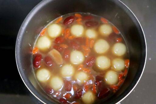 6、再放入山药糯米小圆子,煮几分钟,圆子飘起来。