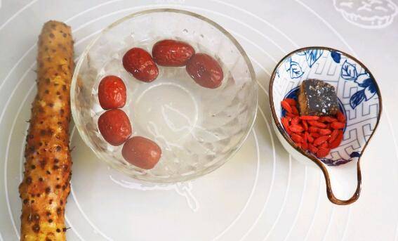 用料:山药100克、糯米粉50克、白糖15克、红枣6颗、红糖15克、枸杞10克、纯牛奶适量。