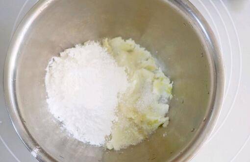 2、蒸好的山药去皮用勺子压泥,放糯米粉、白糖,根据软硬度加少量牛奶混合。