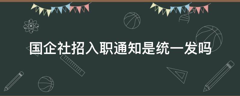 国企社招入职通知是统一发,一般国企社招面试通过后都是五到七个工作日之内通知新职员入职的,最快也需要三个工作日。中央企业,是指由中央人民政府(国务院)或委托国有资产监督管理机构行使出资人职责,领导班子由中央直接管理或委托中央组织部、国务院国资委等其他中央部委管理的国有独资或国有控股企业。