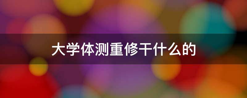 大学体测重修是指进行体育补考。大学体育需要重修的原因主要有体能锻炼时长未达课程要求、上课出席率不足以及期末体能测试不合格等。大学是实施高等教育的学校的一种,包括综合大学和专科学院,是一种功能独特的组织,是与社会的经济和政治机构既相互关联又鼎足而立的传承、研究、融合和创新高深学术的高等学府。它不仅是人类文化发展到一定阶段的产物,还在长期办学实践的基础上,经过历史的积淀、自身的努力和外部环境的影响,逐步形成了一种独特的文化。