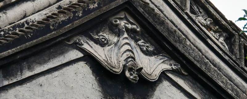 蝙蝠指代福气,寓意“福从天降”。用蝙蝠做建筑物上的装饰物,寄托招财纳福,洪福齐天,吉祥如意的美好祝福。