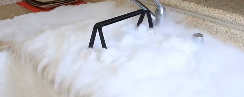 2、入水:干冰比水的温度低很多,所以相当于将干冰加热,干冰吸热升华,使水的温度降低,甚至结冰。