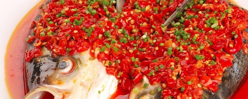1、剁椒鱼头 :通常以鳙鱼鱼头、剁椒为主料,配以豉油、姜、葱、蒜等辅料蒸制而成。菜品色泽红亮、味浓、肉质细嫩。肥而不腻、口感软糯、鲜辣适口。