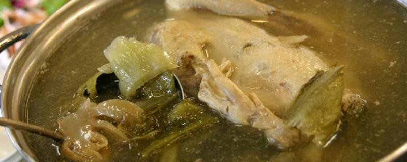 1、饶河酸菜鸭:选用土母鸭制作此菜,汤清味美,咸鲜带酸,鸭肉软糯鲜香。小家庭制作泡菜,常因来不及吃而泡得太酸,用这种酸萝卜制作此菜,比新鲜的泡萝卜味道更胜一筹。如果用微波炉制作,在放汤后,翻入微波炉容器中,先用高火10分钟,再用中火50分钟即可。