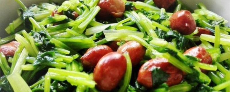 1、准备材料:香菜一把、熟花生米适量、、麻油适量、盐适量、糖适量、醋适量。