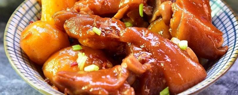 2、将蒸熟的猪蹄掰开,去掉大骨头,切成块备用。
