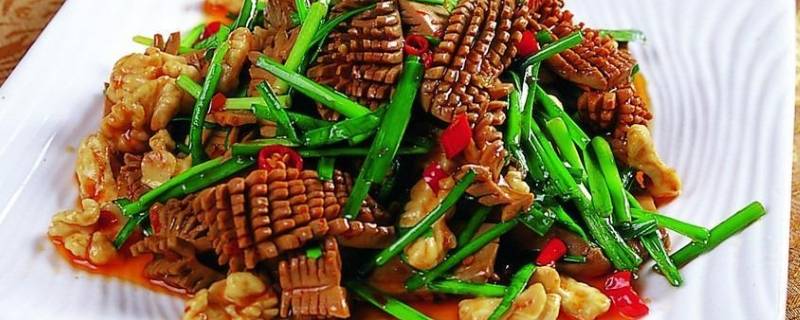10、汁粘在猪腰上后倒入葱段拌匀即可。