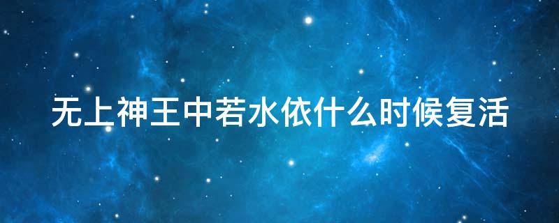 无上神王中若水依第230话复活。《无上神王》是在幻文小说网上连载的小说,作者是草根。主要讲述了一平凡少年在得到神秘珠子之后,以武通神、逆天改命的故事。小说,是一种以刻画人物形象为中心,通过完整的故事情节和环境描写来反映社会生活的文学体裁,小说一词出自《庄子外物》。情节一般包括开端、发展、高潮、结局四部分,有的包括序幕、尾声。小说按照篇幅及容量可分为长篇小说、中篇小说、短篇小说和微型小说。按照表现的内容可分为神话、仙侠、武侠、科幻、悬疑、古传、当代等小说。