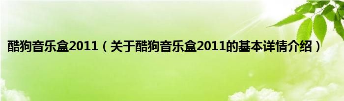 本文关于酷狗音乐盒2011的基本详情介绍就讲解完毕,希望对大家有所帮助。