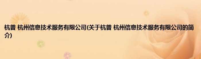 大家好,杭普 杭州信息技术服务有限公司,关于杭普 杭州信息技术服务有限公司的简介很多人还不知道,现在让我们一起来看看吧!