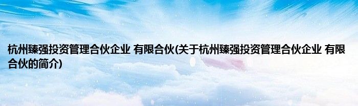 本文关于杭州臻强投资管理合伙企业 有限合伙的简介就讲解完毕,希望对大家有所帮助。
