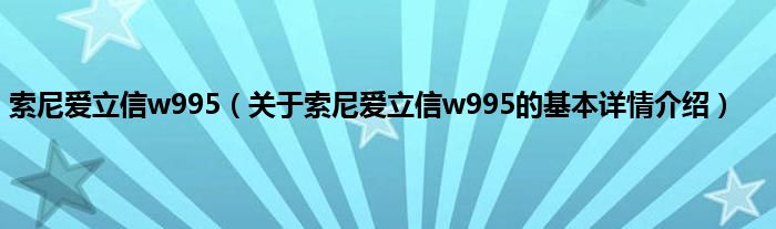 索尼爱立信w995(关于索尼爱立信w995的基本详情介绍)
