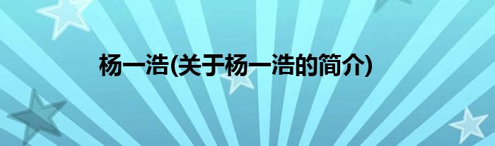 大家好,杨一浩,关于杨一浩的简介很多人还不知道,现在让我们一起来看看吧!