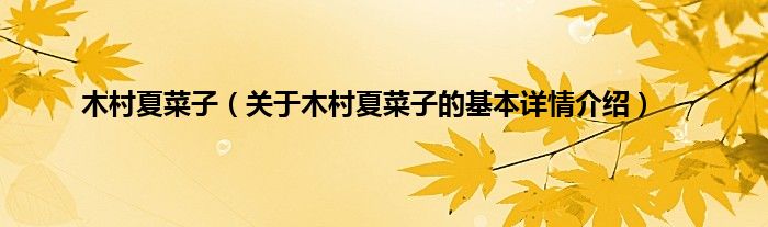 本文关于木村夏菜子的基本详情介绍就讲解完毕,希望对大家有所帮助。