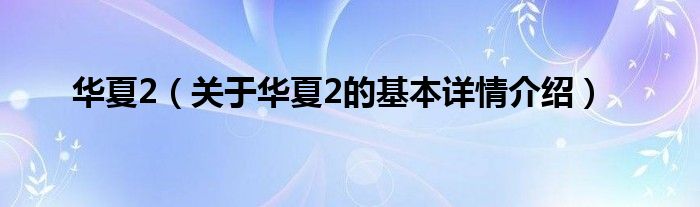 大家好我是小蝌蚪,华夏2,关于华夏2的基本详情介绍很多人还不知道,那么现在让我们一起来看看吧!