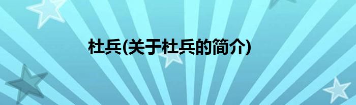 大家好,杜兵,关于杜兵的简介很多人还不知道,现在让我们一起来看看吧!