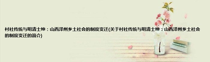 本文关于村社传统与明清士绅:山西泽州乡土社会的制度变迁的简介就讲解完毕,希望对大家有所帮助。