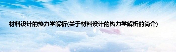 大家好,材料设计的热力学解析,关于材料设计的热力学解析的简介很多人还不知道,现在让我们一起来看看吧!