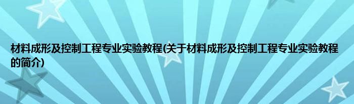 大家好,材料成形及控制工程专业实验教程,关于材料成形及控制工程专业实验教程的简介很多人还不知道,现在让我们一起来看看吧!