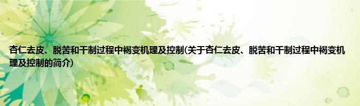 本文关于杏仁去皮、脱苦和干制过程中褐变机理及控制的简介就讲解完毕,希望对大家有所帮助。