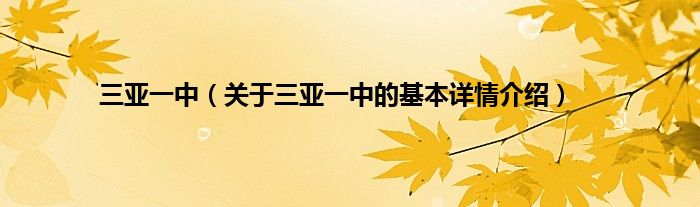 本文关于三亚一中的基本详情介绍就讲解完毕,希望对大家有所帮助。