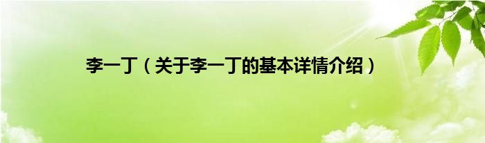 本文关于李一丁的基本详情介绍就讲解完毕,希望对大家有所帮助。