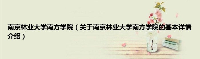 本文关于南京林业大学南方学院的基本详情介绍就讲解完毕,希望对大家有所帮助。
